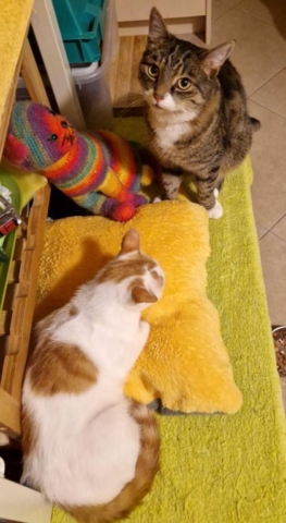 Žili s dalšími 4 kočičkami a pejskem, takže jsou oba výborně socializovaní k ostatním zvířatům.